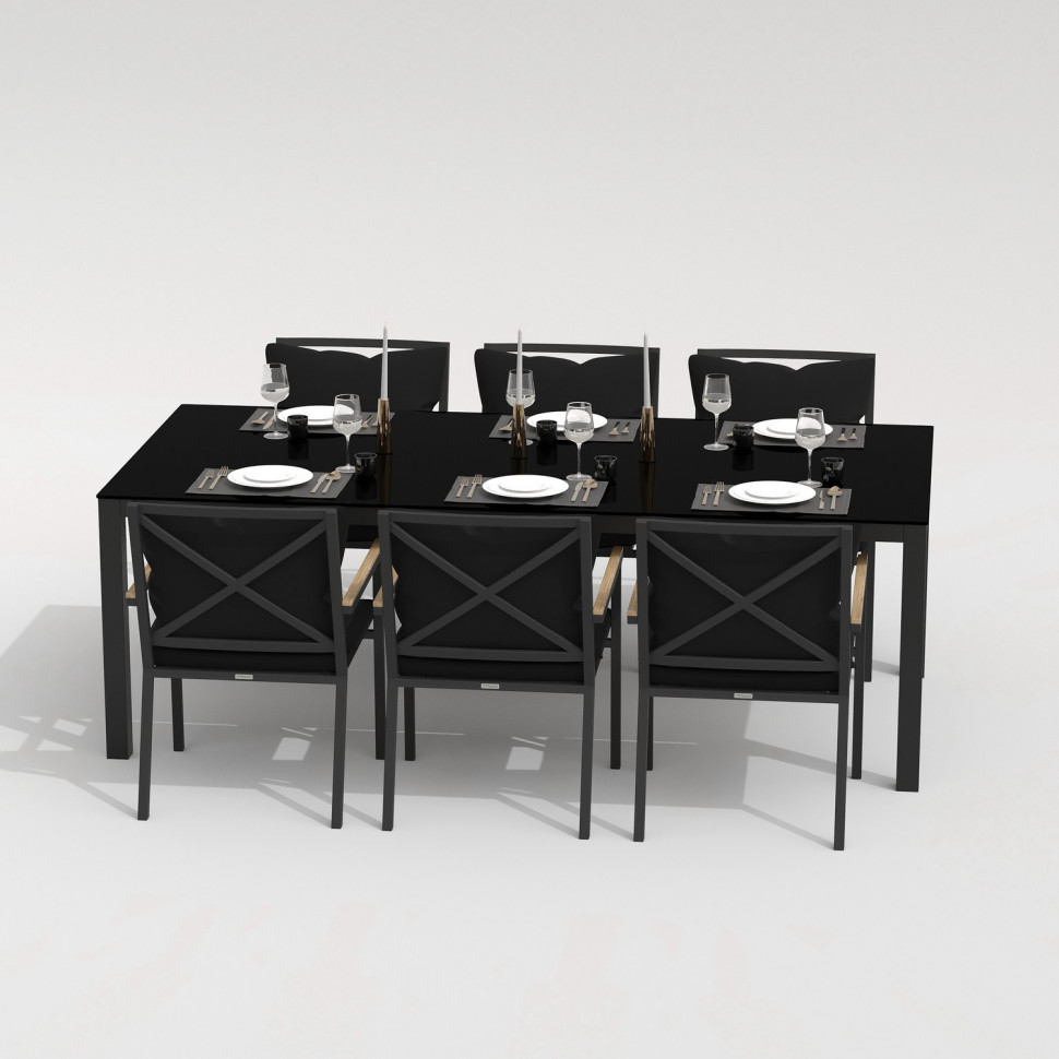 Обеденная группа CANA FESTA plus каркас карбон / стол стекло 200 / ткань черная