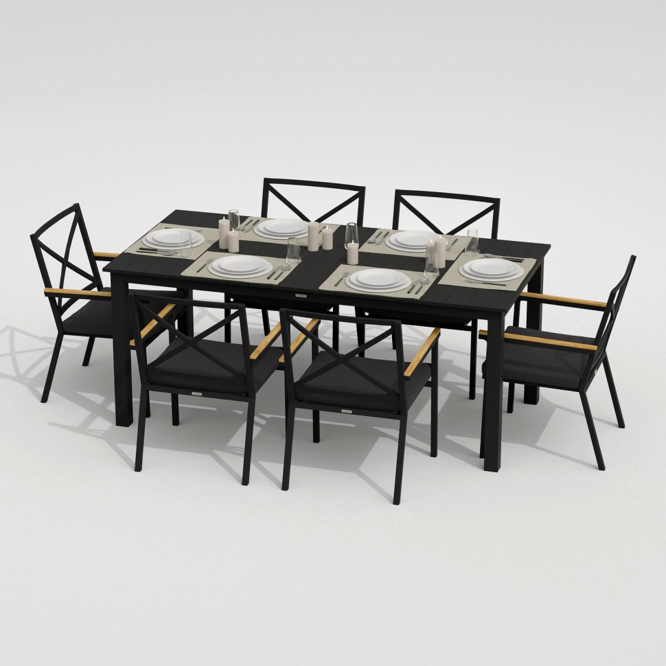 Обеденная группа DOLLA FESTA каркас карбон / стол алюминий 180 / ткань антрацит