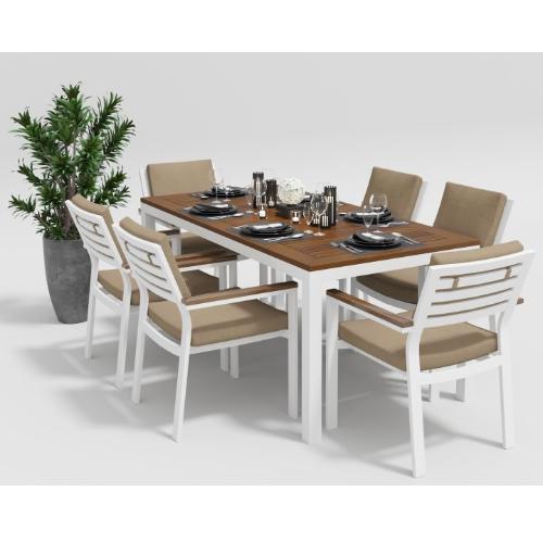 Цвет: каркас белый/подушки бежевые/столешница тик