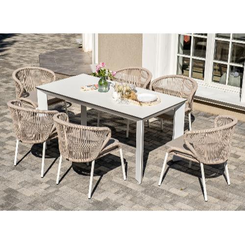 Обеденная группа 4SiS Венето на 6 персон со стульями Милан, каркас белый, роуп бежевый