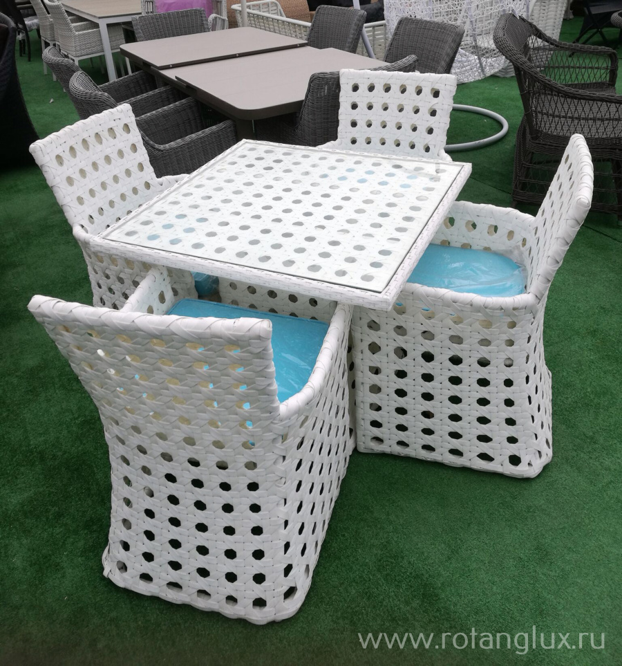 В комплект, изображенный на фото, входит обеденный стол и 4 обеденных кресла. Обратите внимание, Вы можете приобрести отдельные части комплекта именно в том количестве, которое нужно Вам.