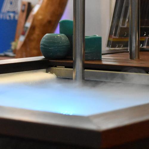 Ледяная прорубь – это купель, размер и форма которой зависит исключительно от пожеланий заказчика. Сам бассейн может быть построен из различных материалов: бетон, современные легкие панели из полистирола Lux Elements. Проектировщики СПА зон совершенно не ограничены в дизайне, так как лицевая отделка может быть выполнена из специальных сортов дерева, мозаики, керамической плитки – что оставляет простор для полета мысли. В готовом виде, этот аттракцион для экстремального охлаждения выглядит как самая настоящая зимняя прорубь: на стенках образуется ледяная корка, а температура воды колеблется от 0 до +1 °C. Таким образом достигается полная имитация зимней купели.