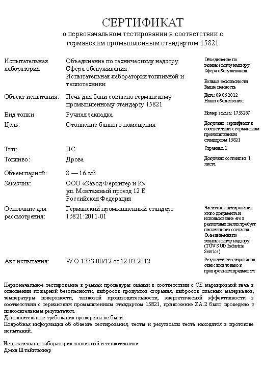 Русский камень, немецкие сертификаты. Ферингер – правильная печь для русской бани.