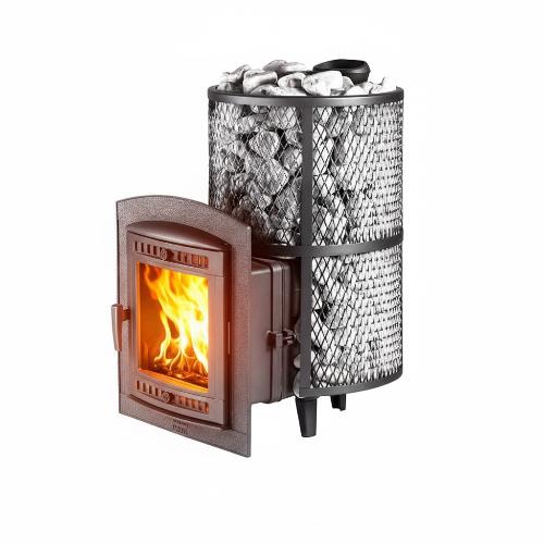 • Открытая каменка. Камни располагаются в специальном кожухе поверх топки, позволяя быстро прогреть помещение и давая экономию топлива.