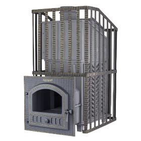 Чугунные банные печи ГЕФЕСТ изготовлены из легированного чугуна с толщиной деталей до 40 мм. Уникальная конструкция печей делает их одними из самых надежных. Модель «ГЕФЕСТ Ураган» отличается расширенной комплектацией: в состав входит высокая кованая стальная сетка для камней, чугунный короб для каменки формы «Президент», чугунная стартовая труба длиной 500 мм, подкидная чугунная дверца ГЕФЕСТ, проставка для установки дверцы непосредственно на короб. Печь имеет полностью закрытую каменку.