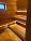 Чугунная печь, облицовка из натурального камня, топится из смежного помещения.
