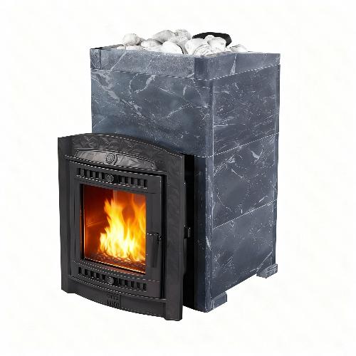 • Закрытая каменка, расположенная внутри топки позволяет провести нагрев камней до очень высоких температур. Камни находятся внутри корпуса каменки и нагреваются непосредственно пламенем равномерно со всех сторон.