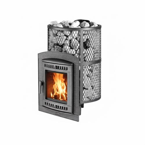 • Закрытая каменка, расположенная внутри топки позволяет провести нагрев камней до очень высоких температур. Камни находятся внутри корпуса каменки и нагреваются непосредственно пламенем равномерно со всех сторон.