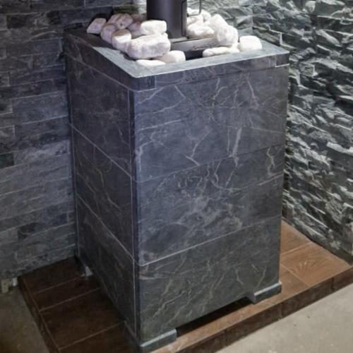 Печь банная Прометалл Атмосфера L в облицовке Талькохлорит под ключ (монтаж 10.2025)