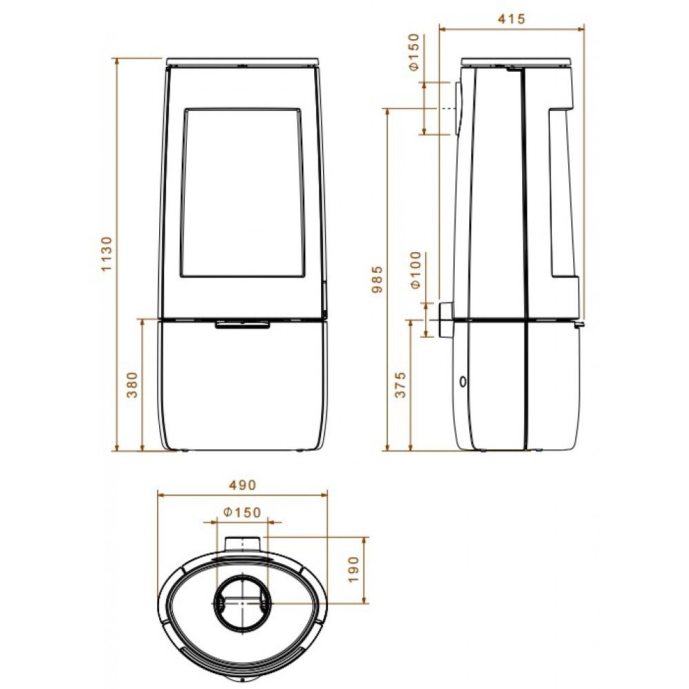 - Диаметр дымохода, мм 150