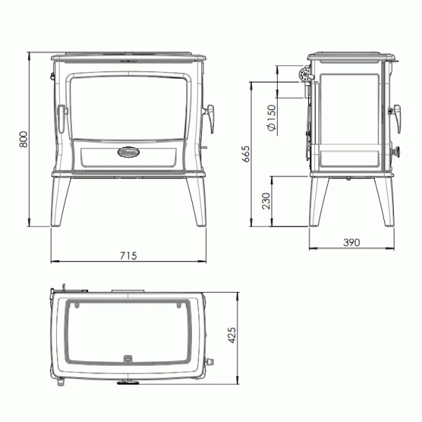 высота: 800 мм, ширина: 715 мм, глубина: 425 мм.