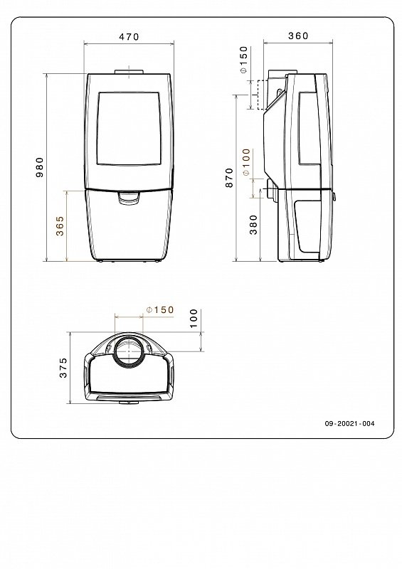 - Диаметр дымохода, мм 150