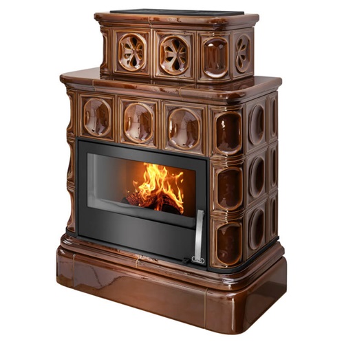 Кафельная печь ABX Karelie P OX, кафельный цоколь - вставка стальная (коричневая)