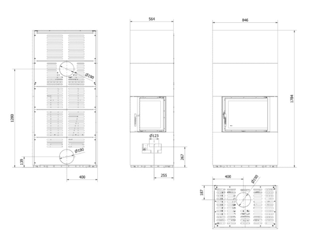 Инструкции, чертежи, документы - Каминокомплект Kratki Pro Floki в облицовке Oxide Nero, угловое стекло слева