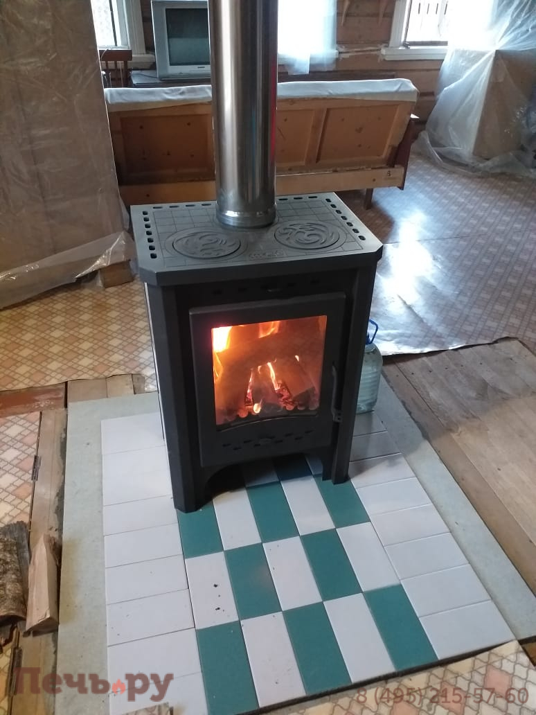 Печь с двумя конфорками. Призматическое стекло. Футеровка - шамот.