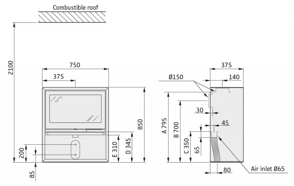 - Диаметр дымохода, мм 150