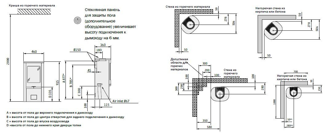 По умолчанию печь имеет верхнее подключение дымохода. При заднем подключении может понадобиться верхняя заглушка к печи. Приобретается отдельно.