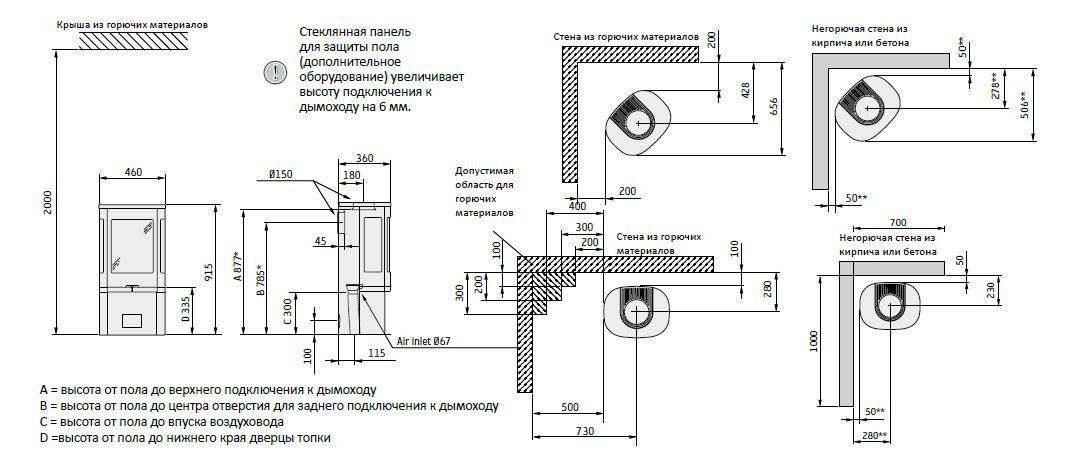 - Выход дымохода Сверху/Сзади