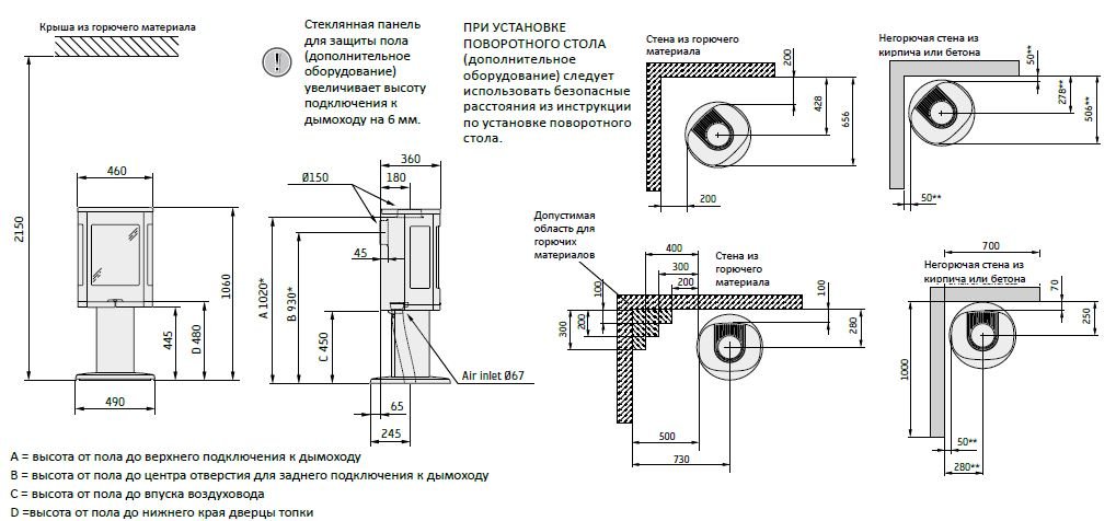 - Выход дымохода Сверху/Сзади