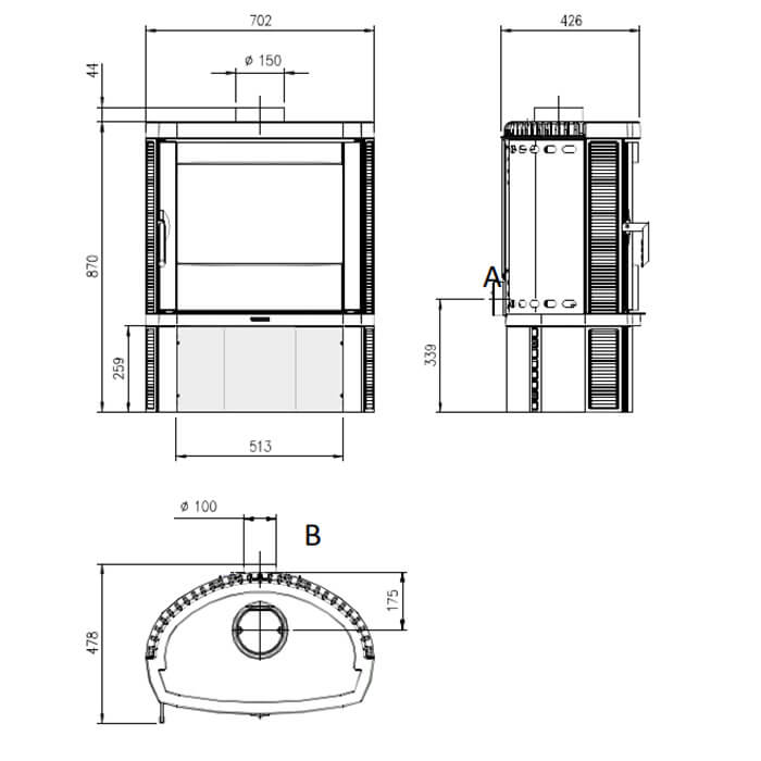 - Диаметр дымохода, мм 150