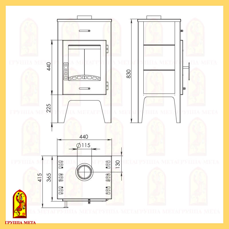 - Диаметр дымохода, мм 115
