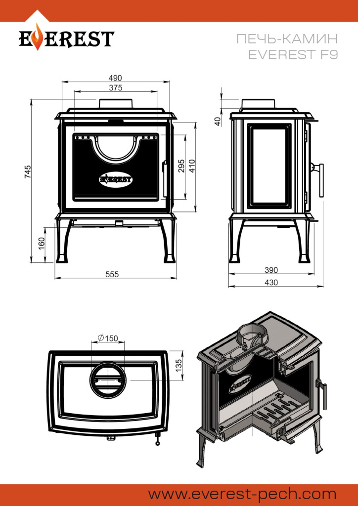 Инструкции, чертежи, документы - Печь-камин Везувий Everest F11