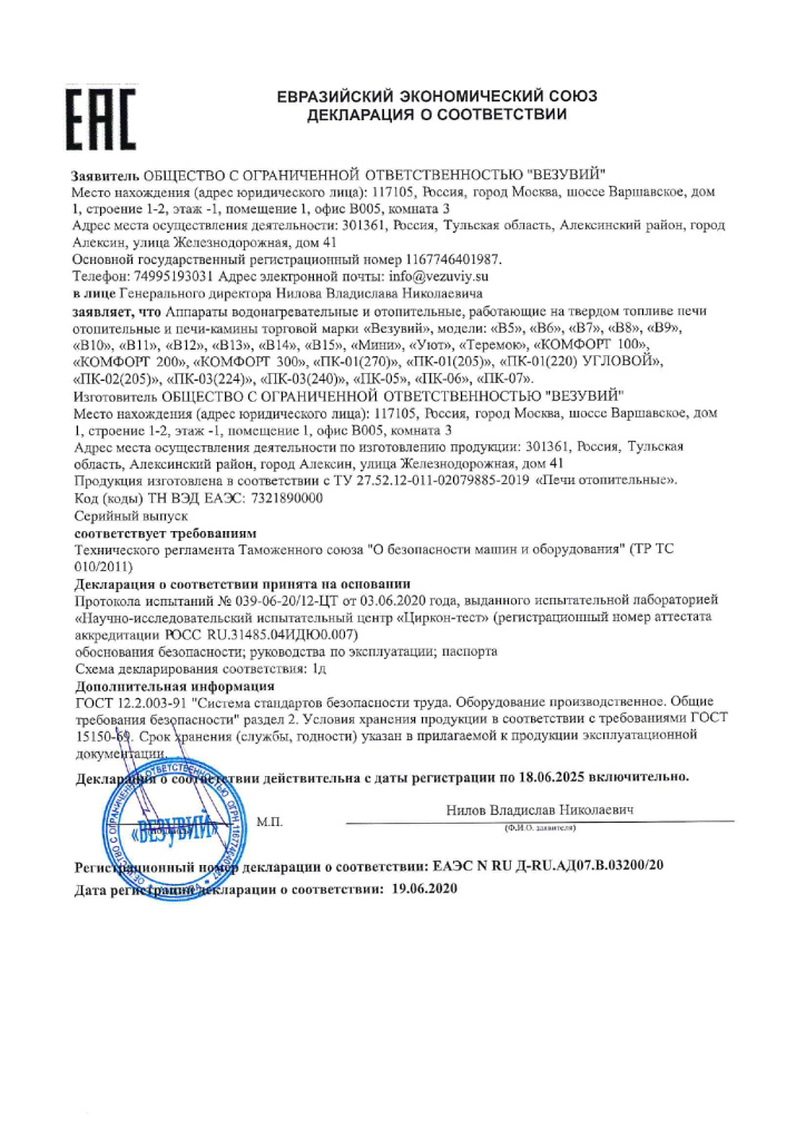 Инструкции, чертежи, документы - Печь-камин Везувий ПК-01 (270) красн. 9 кВт (без плиты)