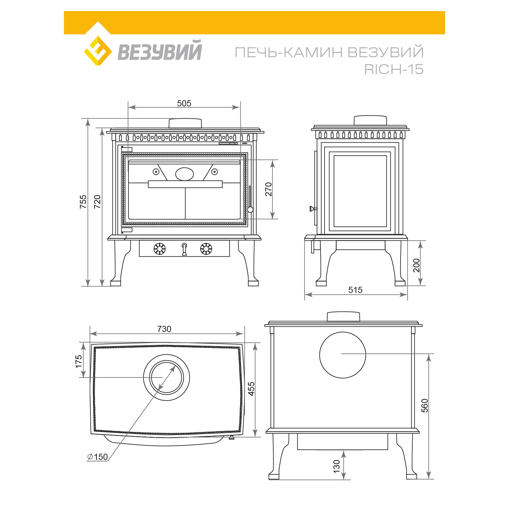 Инструкции, чертежи, документы - Печь камин Везувий RICH-15 Антрацит