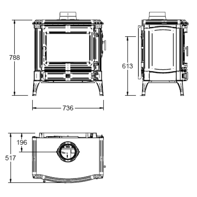 По умолчанию печь имеет верхнее подключение дымохода. При заднем подключении может понадобиться верхняя заглушка к печи. Приобретается отдельно.