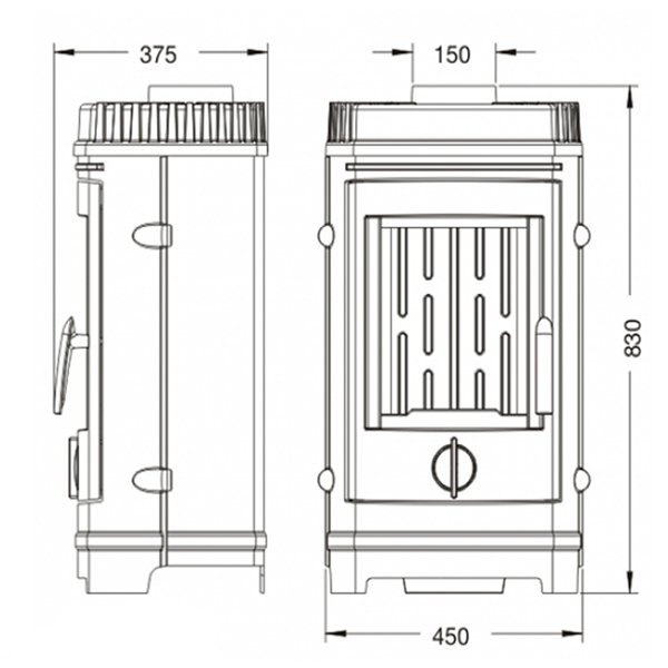 - Диаметр дымохода, мм 150