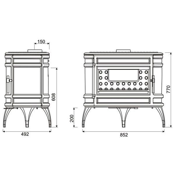 - Диаметр дымохода, мм 150