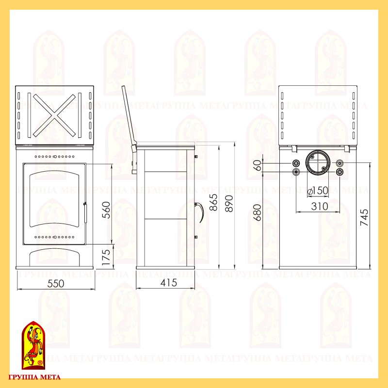 - Диаметр дымохода, мм 150