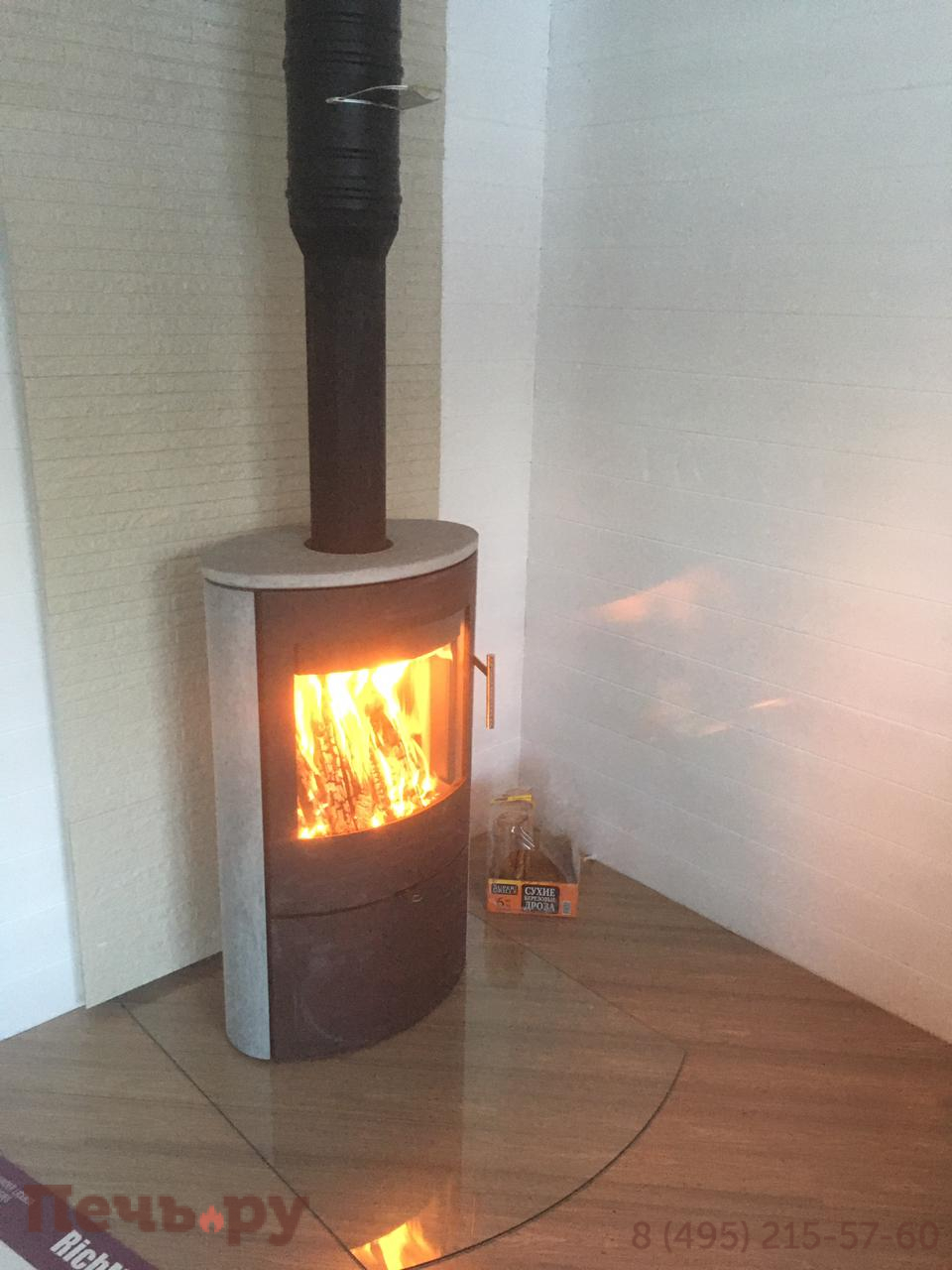 - Печи-камины длительного горения Romotop имеют большие огнеупорные панорамные стекла, которые, не закрывая огонь, защищают помещения от попадания искр, повышают КПД печи.