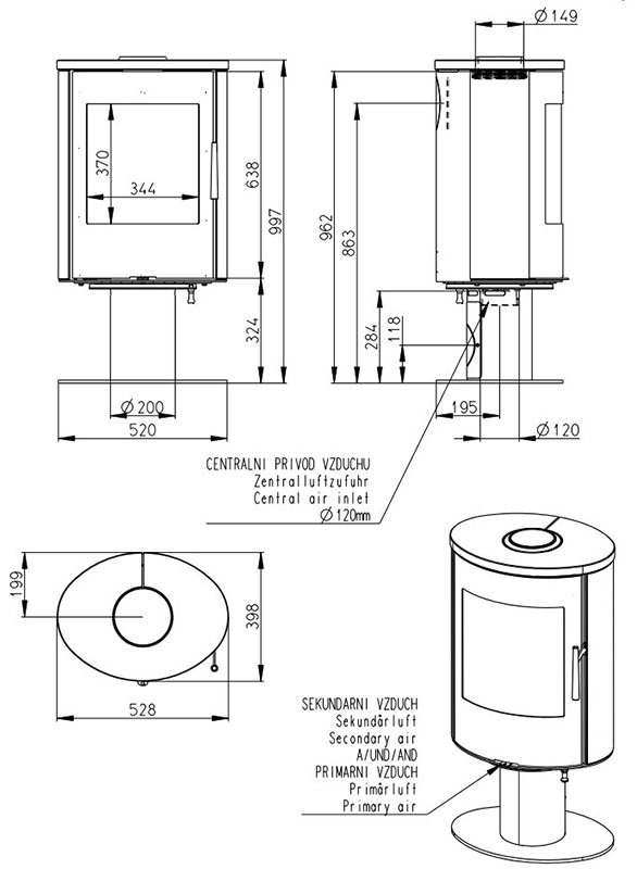 По умолчанию печь имеет верхнее подключение дымохода. При заднем подключении может понадобиться верхняя заглушка к печи. Приобретается отдельно.