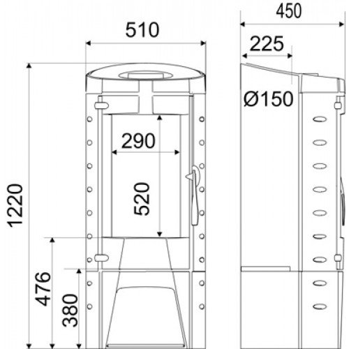 - Диаметр дымохода, мм 150
