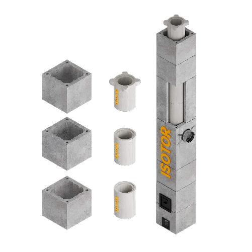 Комплект дымохода Isotor складывается из трёх частей: комплект основания, линейная часть и верхний комплект.