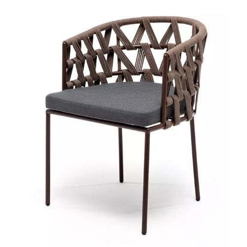 Стул плетеный из 4SiS Диего, каркас из стали коричневый (RAL8016) муар, роуп коричневый круглый, ткань темно-серая 027