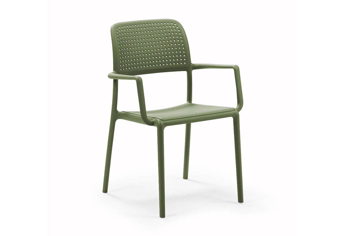 Уличные стулья Bora коллекции Lekko с подлокотниками от производителя Nardi - это стильный и элегантный стул от итальянских дизайнеров из стеклопластика, разработанный для коммерческого использования в помещении и на улице.