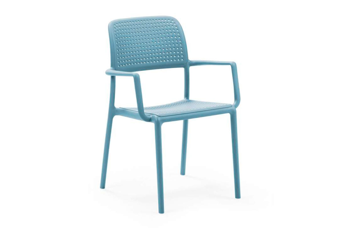 Уличные стулья Bora коллекции Lekko с подлокотниками от производителя Nardi - это стильный и элегантный стул от итальянских дизайнеров из стеклопластика, разработанный для коммерческого использования в помещении и на улице.