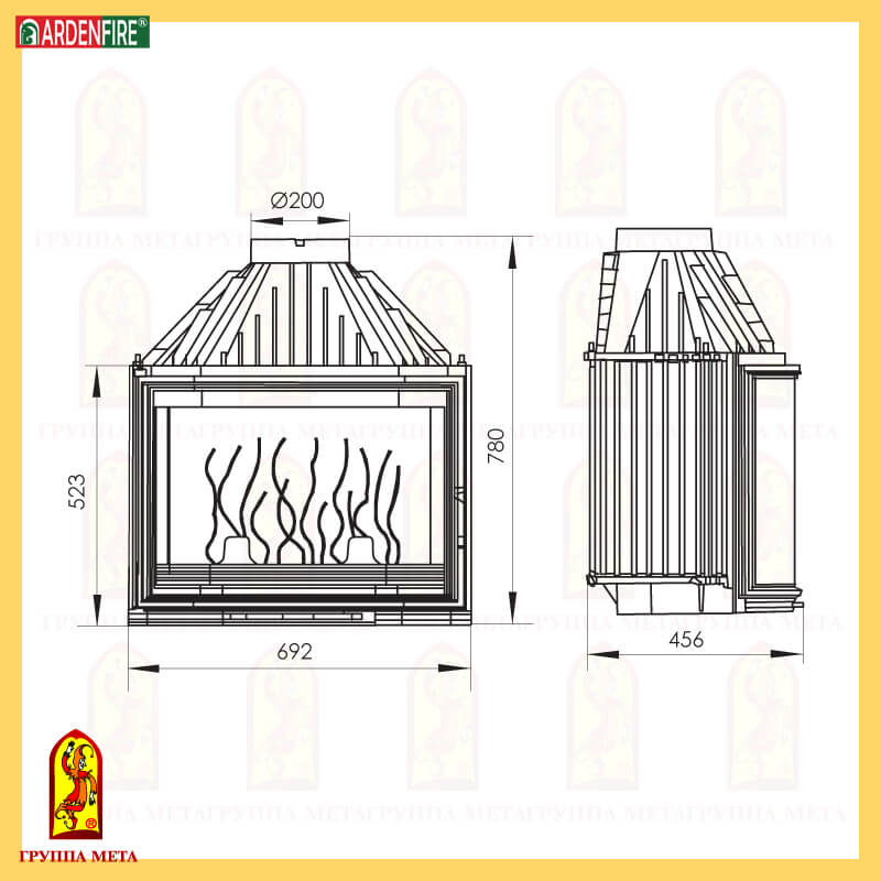 Инструкции, чертежи, документы - Каминная чугунная топка Мета Призма 700