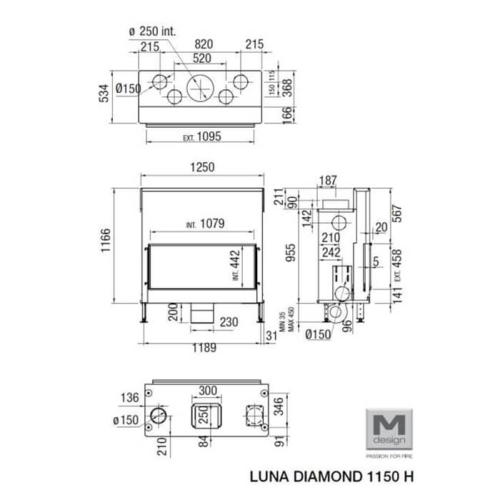 Инструкции, чертежи, документы - Каминная топка M-design Luna 1150 Н Diamond (Луна 1150 H Даймонд)