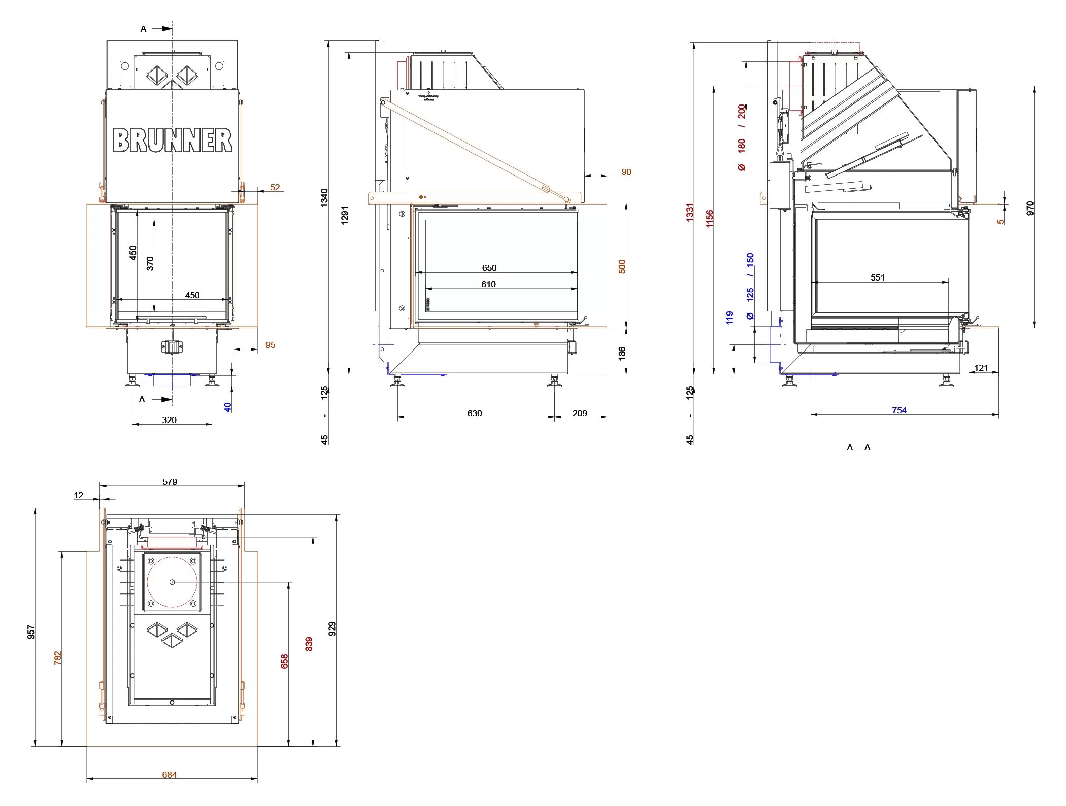 Инструкции, чертежи, документы - Каминная топка Brunner BKH Panorama 45/65/45/65 ST