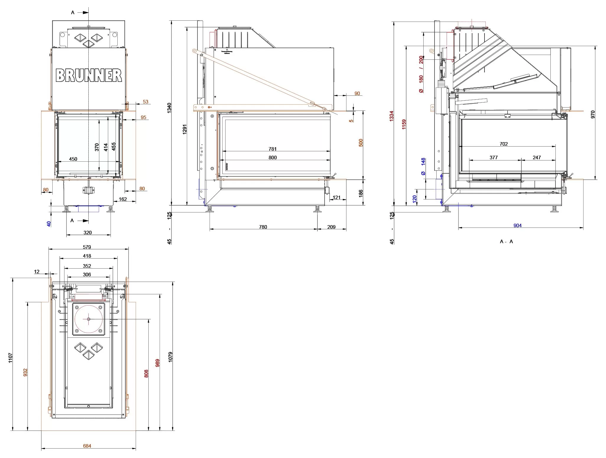 Инструкции, чертежи, документы - Каминная топка Brunner BKH Panorama 45/80/45/80 ST
