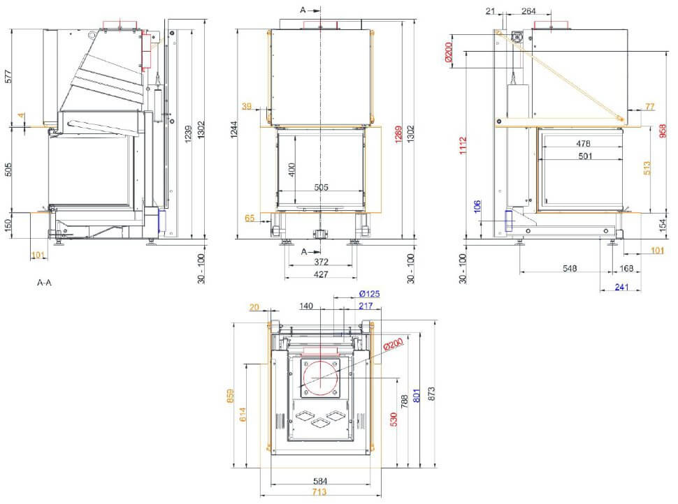 Инструкции, чертежи, документы - Каминная топка Brunner Panorama-Kamin 51/50/50/50