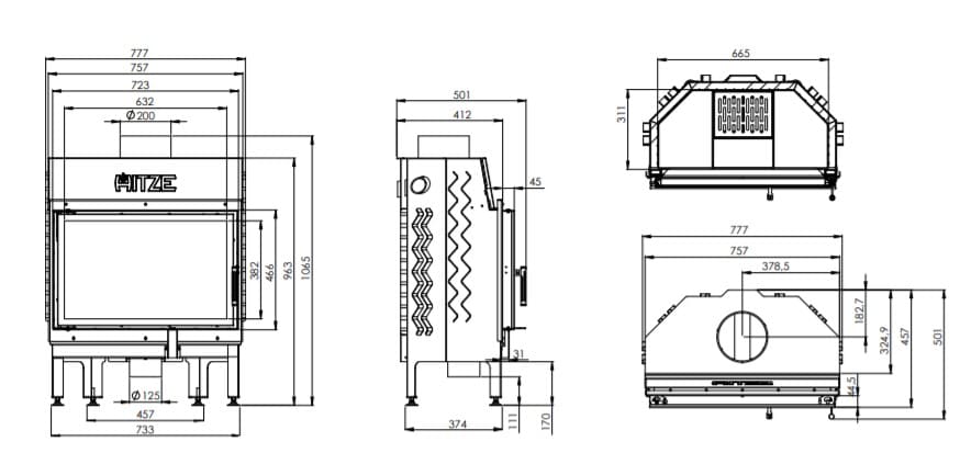 Инструкции, чертежи, документы - Каминная топка Hitze Albero AL14S.H DI