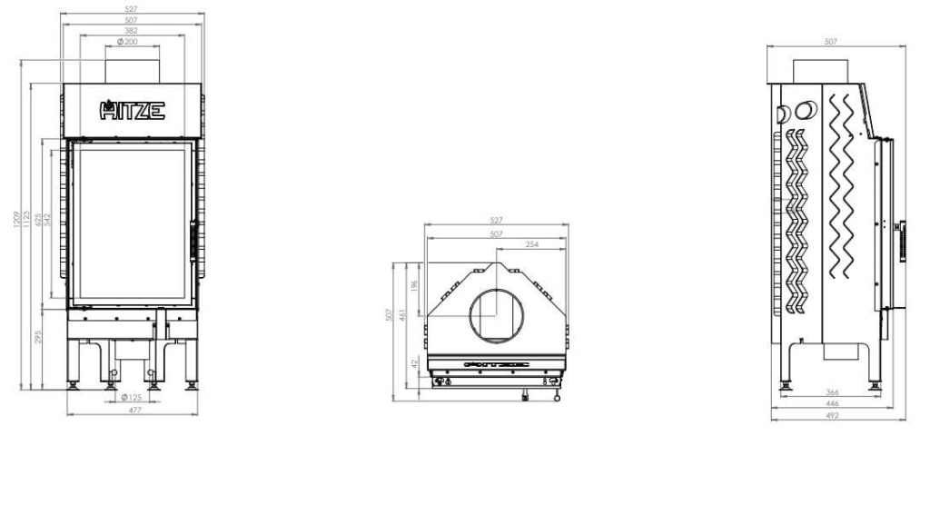 Инструкции, чертежи, документы - Каминная топка Hitze Albero AL14S.V DI