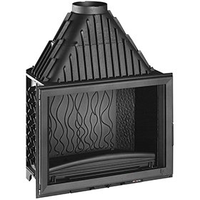 Топка полностью чугунная, увеличенный дымосборник, боковое открывание дверцы. Есть регулировка закрытия дверцы и система "чистое стекло".