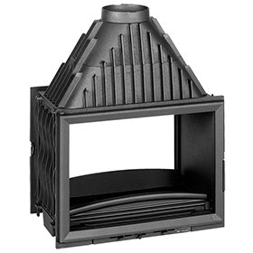 Топка полностью чугунная, увеличенный дымосборник, боковое открывание дверцы. Есть регулировка закрытия дверцы и система "чистое стекло".