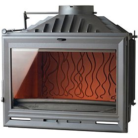 Топка из чугуна с прямым стеклом и оригинальным дизайном.