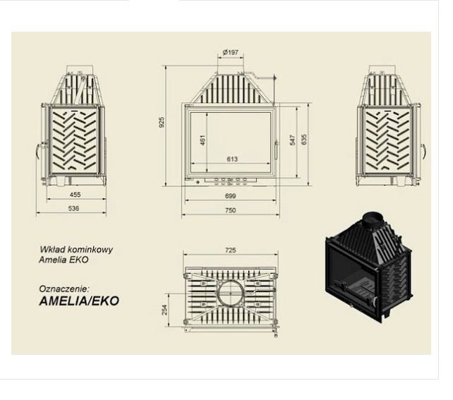 Инструкции, чертежи, документы - Каминная топка Kratki Amelia/EKO/GLASS (двойное стекло)